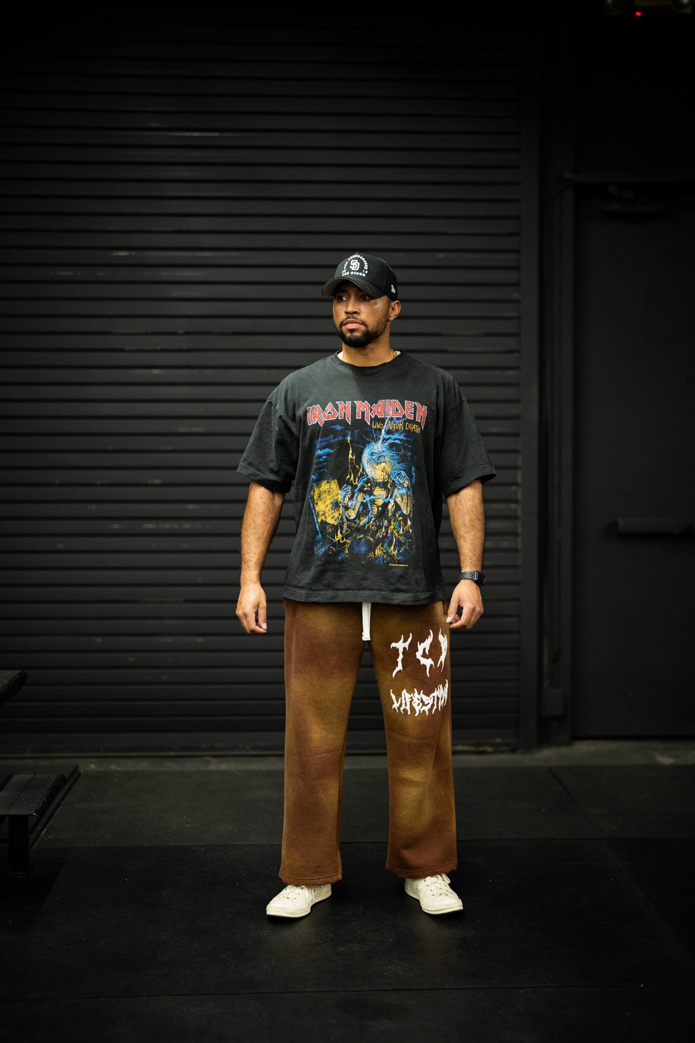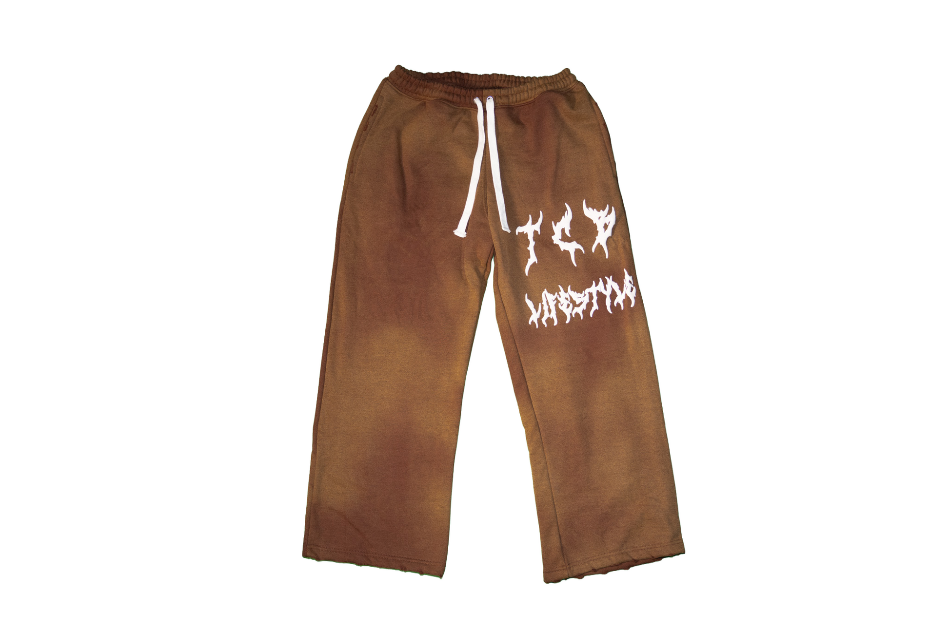 DESIGN: These sweats are distressed and acid washed with our puff print design. They are straight legged and have a cropped fit at the bottom. Size up for a more oversized look